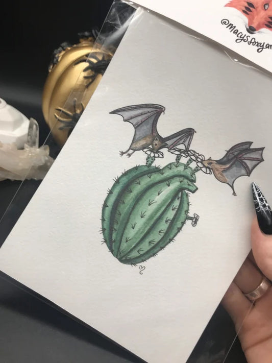 Bats with Saguaro Cactus Heart - Giclee fine art prints