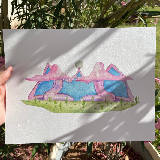 Pink Clouds Mountain Pose - Giclee fine art prints